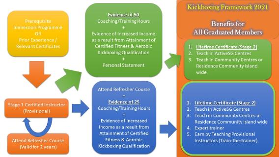 Participants shall attain the Industrial Immersion Bridging Module and move forward to the Certified Fitness and Aerobic Kickboxing Leader Training (Provisional) Course.